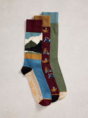 Mountain Ride Socks, Pack Of 3, Purple/Multi