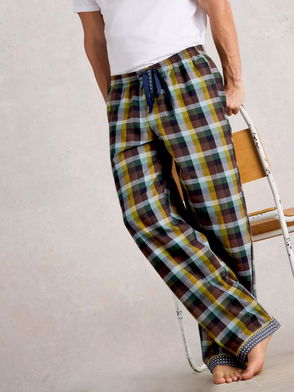 Moorland Check Cotton Pyjama Bottoms, Green/Multi