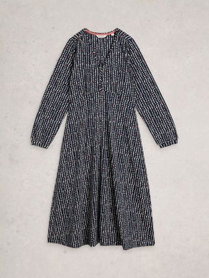 Rua Abstract Polka Dot Shirt Dress, Navy/Multi