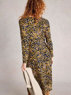 Tallie Abstract Floral Jersey Dress, Navy/Multi