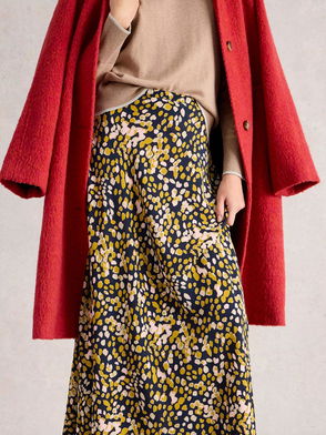 Elle Abstract Linen Blend Skirt, Navy/Multi