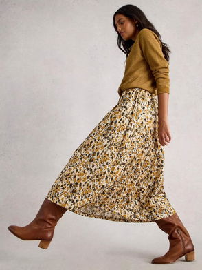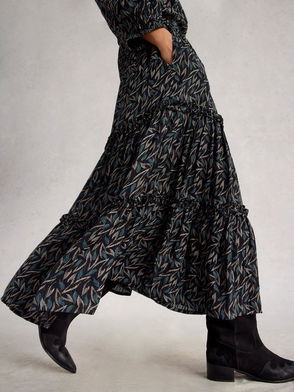 Marissa Leaves Maxi Skirt, Navy/Multi