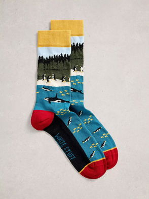 Organic Cotton Blend Geometric & Bicycle Print Socks, Pack of 3