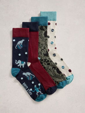Animal Stripe Socks, Pack Of 3, Green/Multi