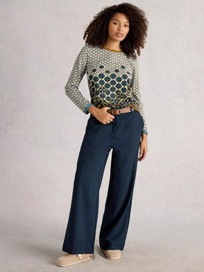 Savannah Organic Cotton Rich Tailored Trousers, Dark Navy
