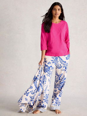 Nelly Leaves Notch Neck T-Shirt, Pink
