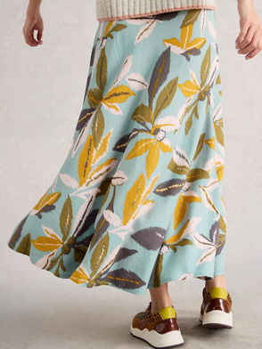 Jada Leaf Print A-Line Maxi Skirt