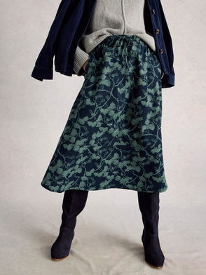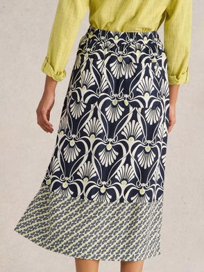 Tilly Leaves Print Mid Rise Organic Cotton Midi Skirt