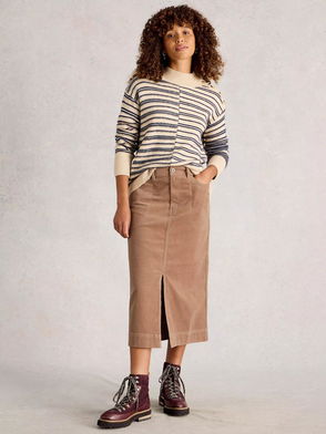 Tia Corduroy Midi Skirt, Natural