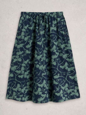 Tilly Leaves Print Mid Rise Organic Cotton Midi Skirt