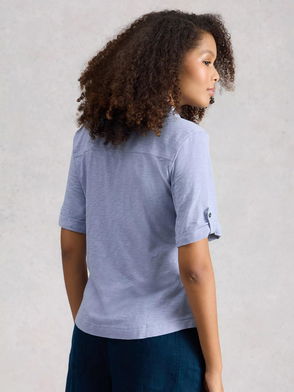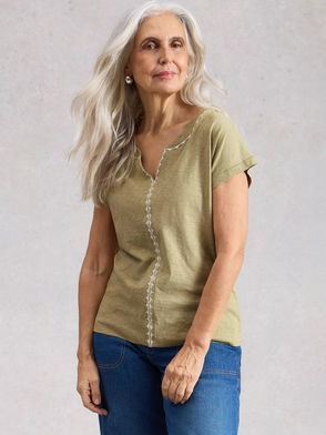 Nelly Embroidered Notch Neck T-Shirt, Blue