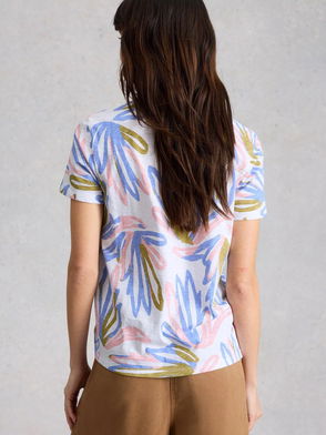 Nelly Cotton Notch Neck T-Shirt, White/Multi