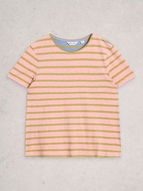 Nelly Striped Notch Neck T-Shirt, Yellow/White