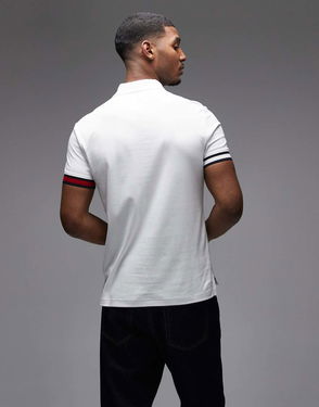 Cuffed Slim Fit Polo Shirt In White