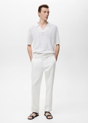 Openwork Knitted Cotton Polo Shirt