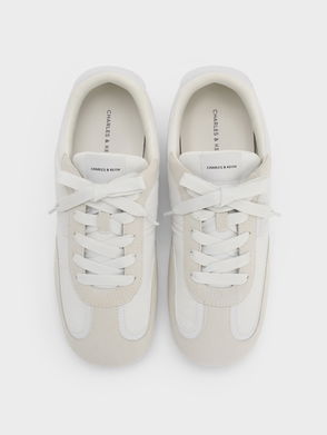Satin Textured Contrast-Panel Triple-Bow Sneakers