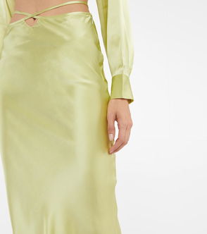 Tie-trimmed Silk Satin Midi Skirt