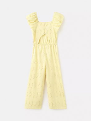 Kids' Marie Floral Embroidered Sequin Puff Sleeve Jumpsuit, Lemon