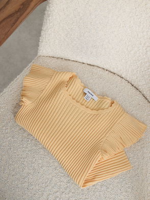 9-13 Yrs Pointelle Rib-Knit Frill-Sleeve Top In Lemon Yellow