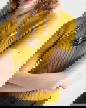 13-14 Yrs Pointelle Rib-Knit Frill-Sleeve Top In Lemon Yellow