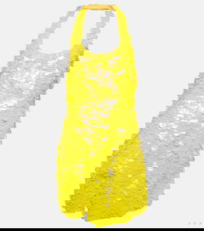 Yellow Animal Print Textured Puff Sleeve Mini Dress