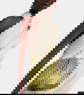 Goldentime Small Leather-Trimmed Raffia-Jacquard Tote