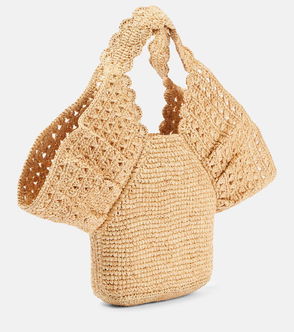 Goldentime Medium Embellished Leather-Trimmed Raffia Tote