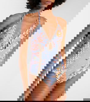 Awaken Crochet-trimmed Floral-print Halterneck Swimsuit