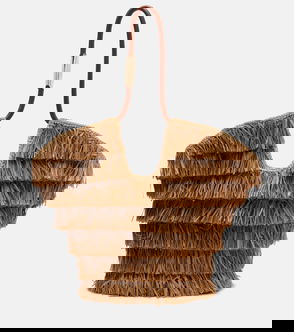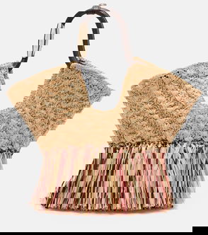 Goldentime Medium Embellished Leather-Trimmed Raffia Tote