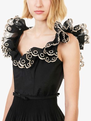 Appliquéd Tulle-Trimmed Velvet Midi Dress
