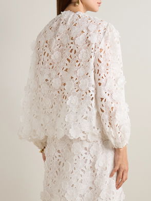 Crush Ruffled Embroidered Linen And Silk-Blend Organza Blouse