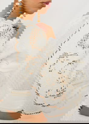 Ruffled Glittered Polka-Dot Tulle Blouse