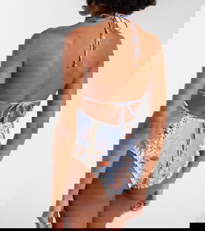 Awaken Crochet-trimmed Floral-print Halterneck Swimsuit