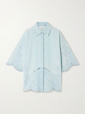 Pop Embellished Scalloped Broderie Anglaise Linen Peplum Top