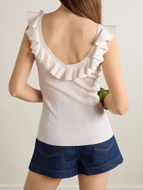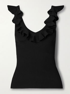 Awaken Ruffled Ribbed-knit Top