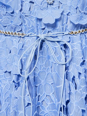 Awaken Belted Lace-trimmed Denim Mini Dress