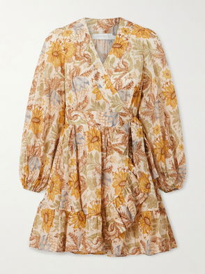Daylight Ruffled Floral-print Cotton-voile Mini Wrap Dress