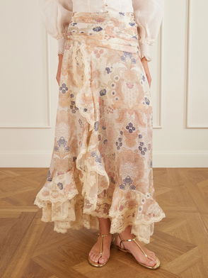 Rebellion Lace-trimmed Floral-print Linen And Silk-blend Maxi Skirt