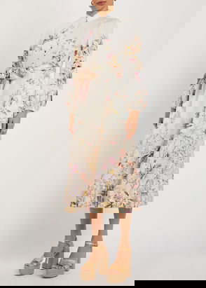 Picnic Embellished Floral-print Linen And Silk-blend Midi Dress