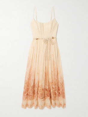 Embellished Belted Cotton And Silk-Blend Mini Dress