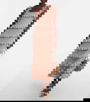 Floral-Appliquéd Ruffled Gauze Mini Dress