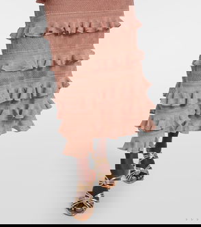 Tiered Tasseled Crocheted Wool Midi Skirt
