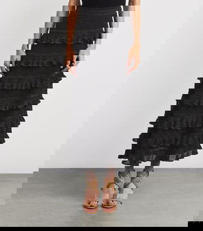 Tiered Crocheted Cotton Midi Skirt