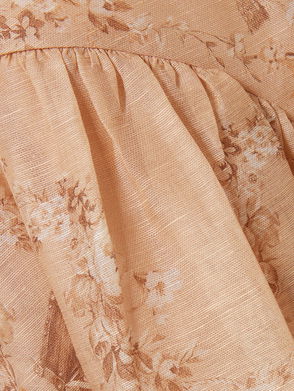 Gathered Printed Linen And Silk-Blend Gauze Mini Skirt