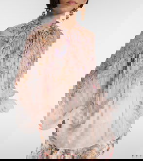 Wonderland Floral-Print Linen And Silk-Blend Organza Bustier Top