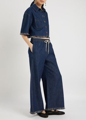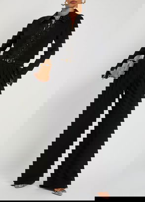 Patchwork Lace-paneled Linen And Silk-blend Jacquard Wide-leg Pants