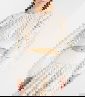 Ottie Bead-Embellished Cropped Cotton Guipure Lace Top