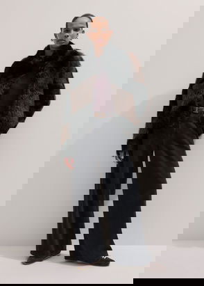 Jacquard Half Zip Knit Maxi Dress Black Multi