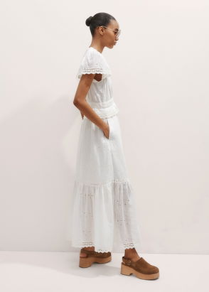 Modern Zig Zag Broderie Maxi Dress Soft White