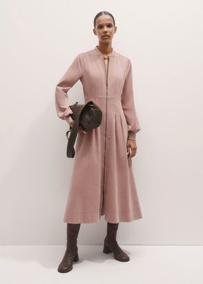 Soft Cord Pleated Midi Dress Dusty Pink